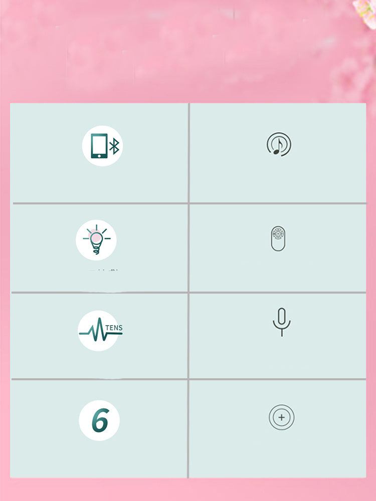 وظيفة المنتج: تدليك النبض، وضع البلوتوث (يمكن الرد على الهاتف)، ضغط ساخن بدرجة حرارة ثابتة، بث صوتي