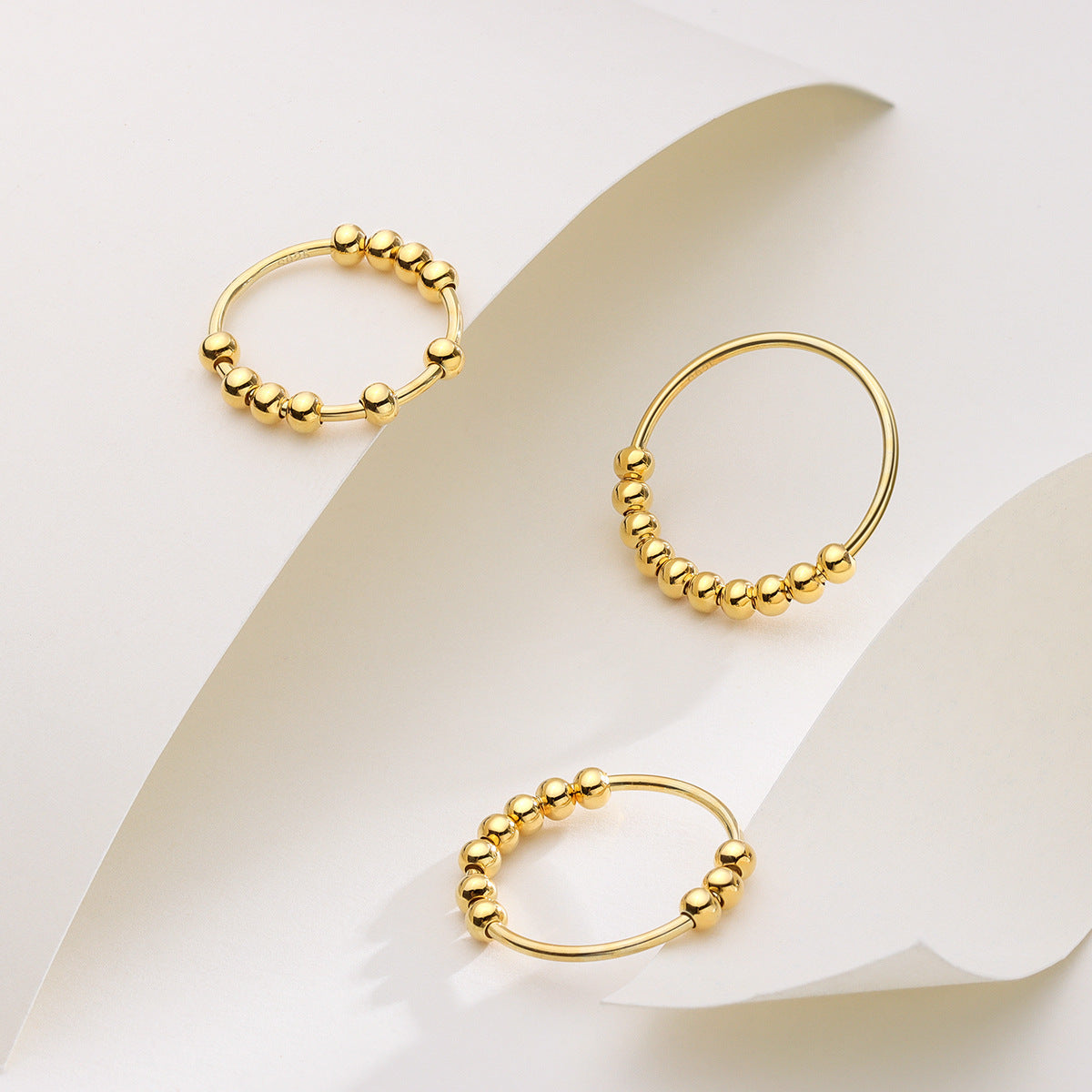 خاتم محظوظ من الفضة الإسترلينية S925 بعشر حبات لتخفيف القلق