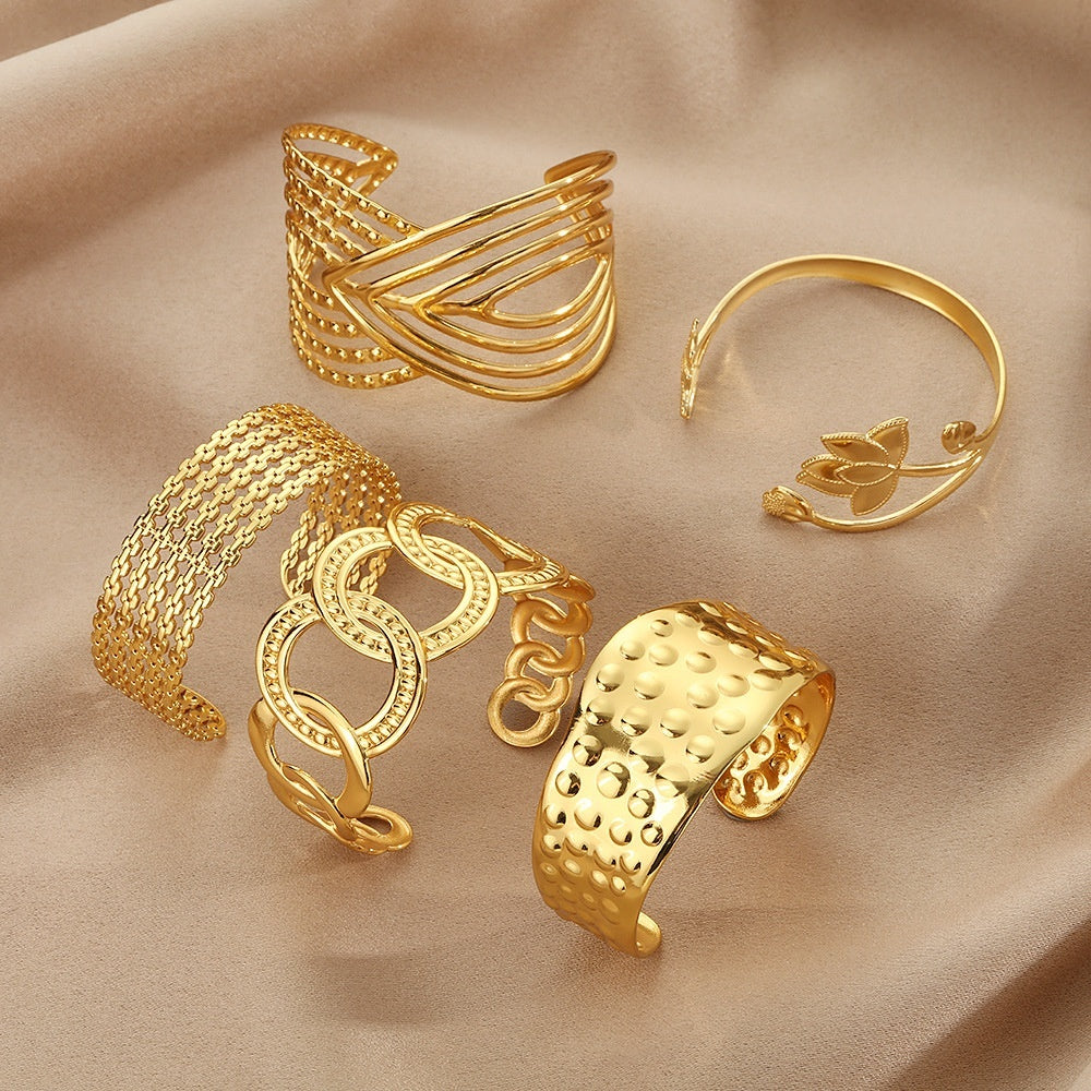 Stainless Steel Bracelet Lotus Shape Ring Large Glossy Stripes