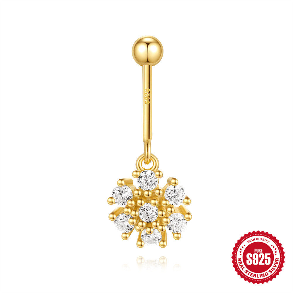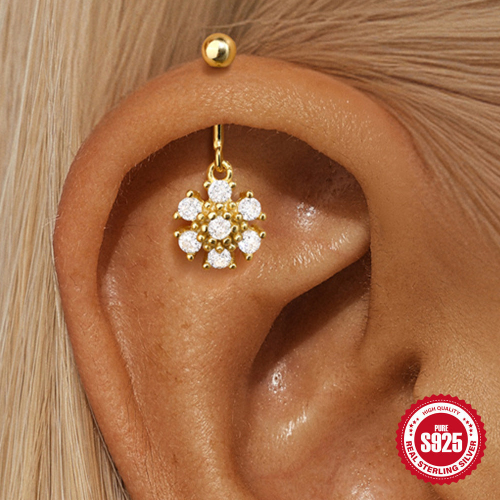 S925 Sterling Silver Snowflake Horse Eye Diamond Ball Flat Back Vertical